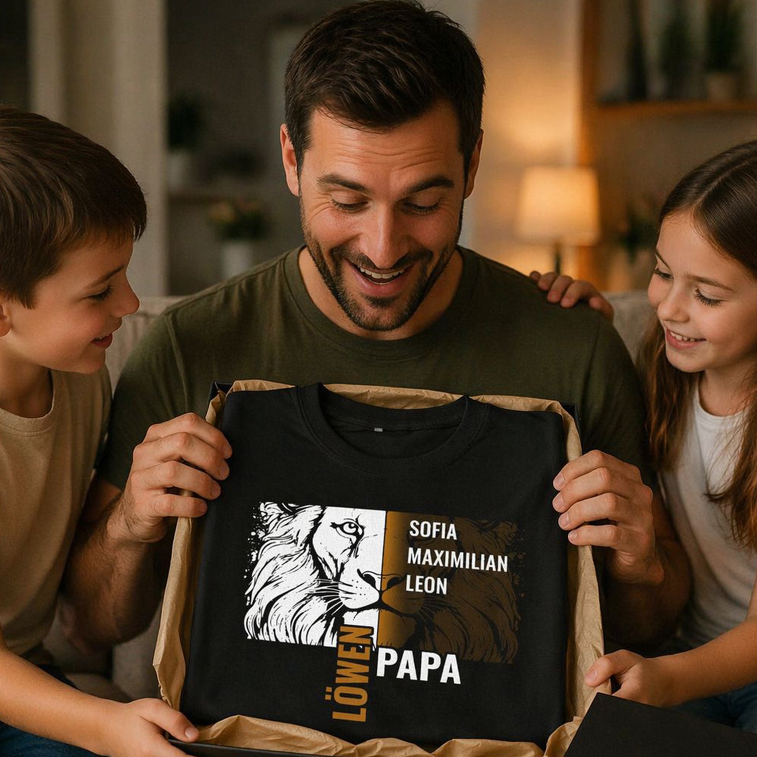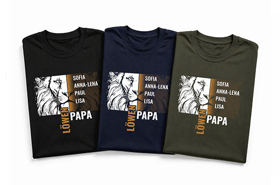 Papa Shirt personalisiert - Löwenpapa mit Namen der Kinder